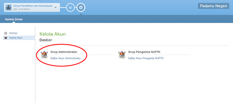 3. Pilih menu Kelola Akun > Daftar Akun Administrator
